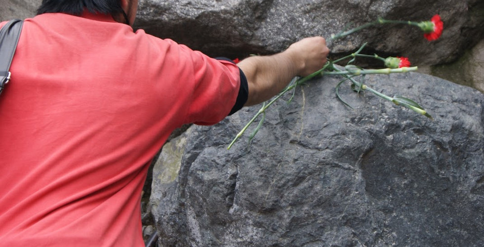 En contraste, en el memorial, los familiares de los desaparecidos dejan sus ofrendas florares y reflexionan. En el fondo los discursos de megáfono de diversos movimientos "neo anarquistas" que con sus arengas irrumpen y ámbito solemne del lugar.
